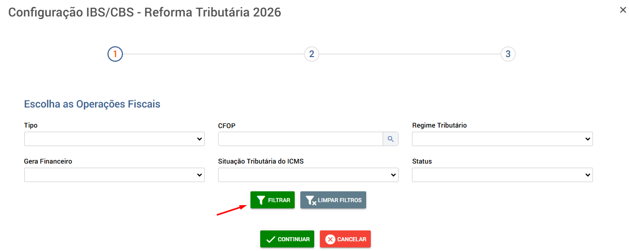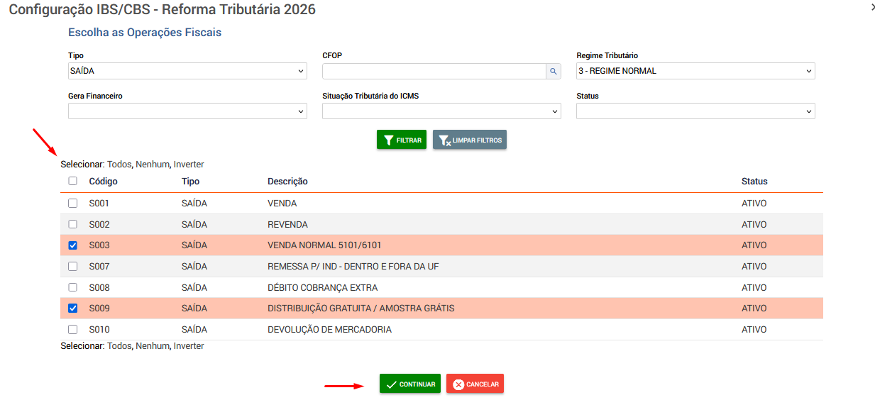 Escolha as Operações Fiscais: