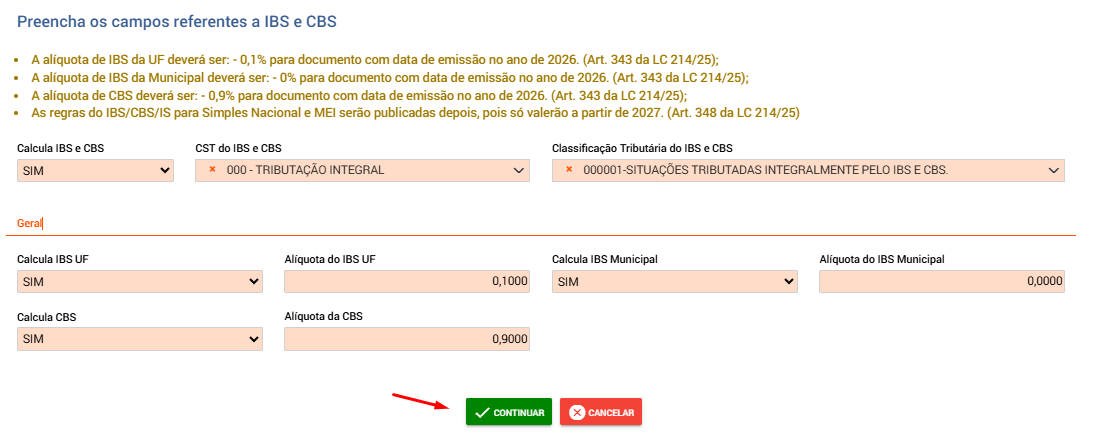 Se sim, o CBS será calculado.