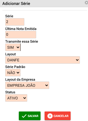 Se sim, essa série será preenchida automaticamente nas novas notas fiscais cadastradas no sistema.