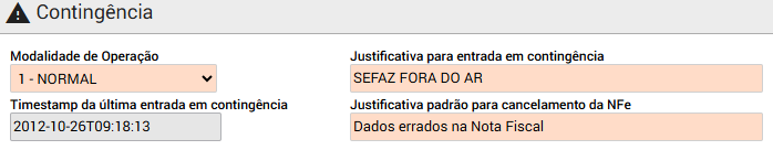 Define a modalidade de operação da NF-e em caso de indisponibilidade da SEFAZ. Quando a SEFAZ estiver em contingência (instabilidade ou fora do ar), é possível selecionar a modalidade pela qual as notas serão emitidas e transmitidas.