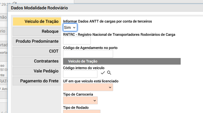 No Manifesto de Embarque (Dados Rodoviário) quando selecionar “Informar dados ANTT de cargas por conta de terceiros”: SIM