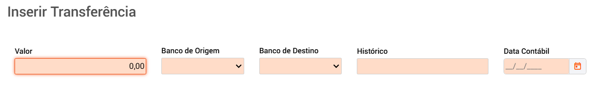 c) Inserir Transferência> Incluir uma transferência que foi realizada entre as contas da empresa.