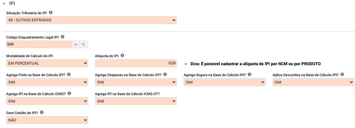 Dica: É possível cadastrar a alíquota do IPI por NCM ou por PRODUTO
